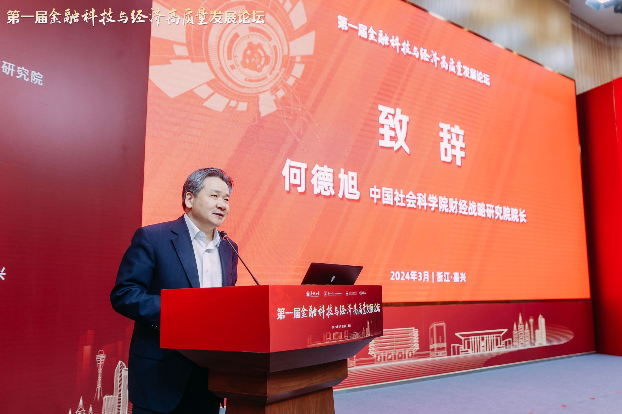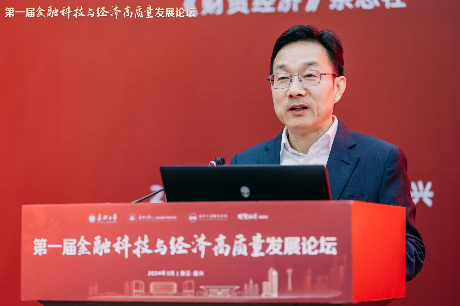 校党委书记卢新波教授代表主办方致辞,对与会嘉宾表示热烈欢迎,并介绍了嘉兴大学的发展历史、办学特色和未来规划,以及嘉兴经济社会发展的突出成绩、独特优势和发展潜力。他表示,金融是国民经济的血脉,是国家核心竞争力的重要组成部分,全国上下正深入学习贯彻中央金融工作会议精神,围绕走好中国特色金融发展之路和建设中国金融强国目标,做好科技金融、绿色金融、普惠金融、养老金融、数字金融五篇大文章,助力实体经济高质量发展,本次论坛围绕金融科技与经济高质量发展,聚焦金融强国建设的热点问题、前沿问题、痛点问题,展开深入交流和讨论,有助于为学术研究提供新方向,为企业发展提供新思路。